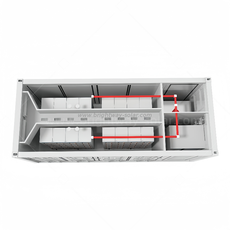 O contêiner de 500kW/1.106Wh Outdoor de 40 pés foi projetado para projetos de armazenamento de energia comercial e industrial em larga escala. No lado CC, o sistema compreende oito unidades modulares de energia da bateria de lítio, cada uma com capacidade de 138kwh. Enquanto estava no lado CA, ele utiliza os PCs da Brightway Solar Series. Através da estratégia de operação do EMS, ele interage com a grade de maneira adequada à grade e fornece suporte de energia aos clientes durante períodos de fonte de alimentação limitada.